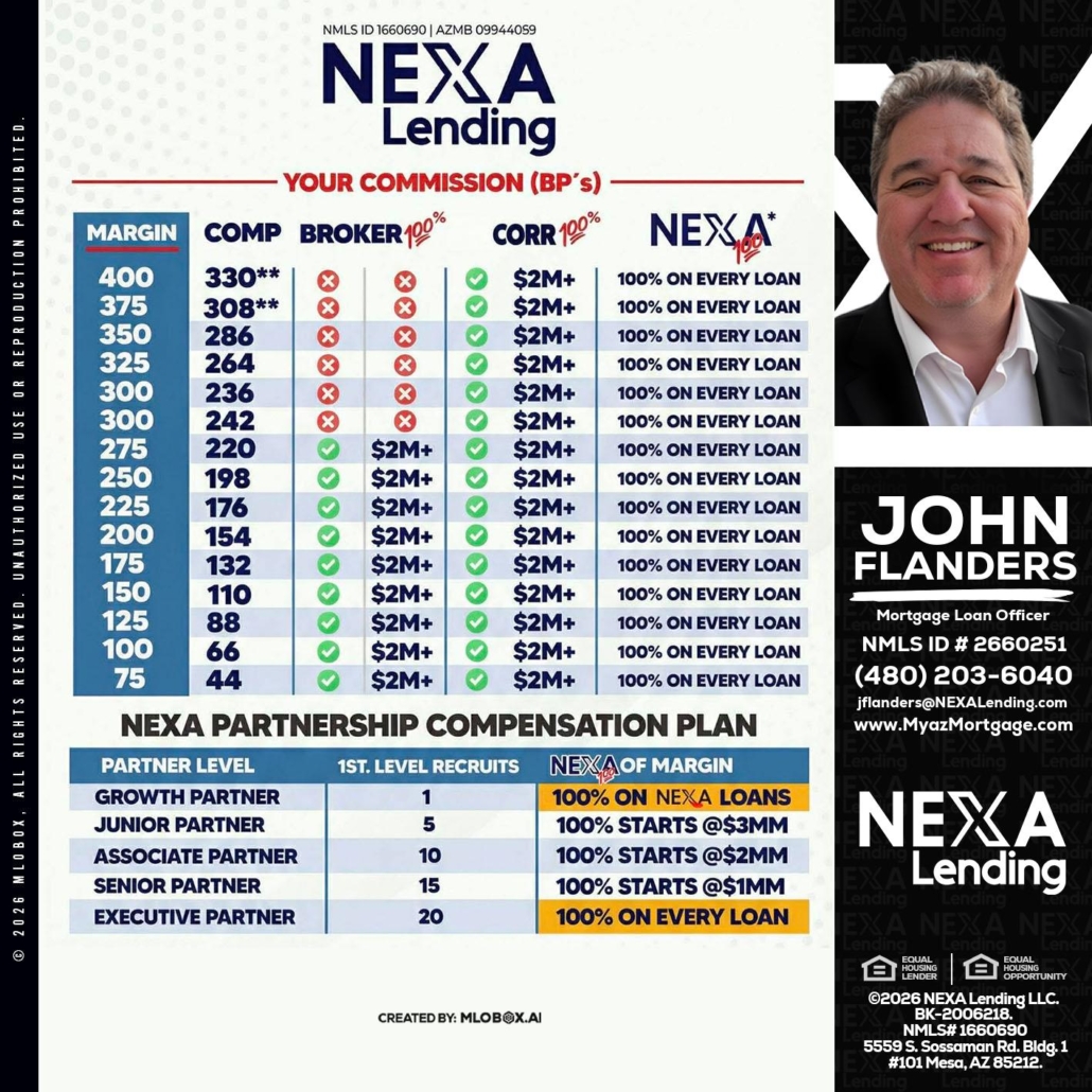 COMP - John Flanders -Mortgage Loan OfficerHi, my name is John Flanders. I’m a Loan Officer with NEXA Lending LLC., offering personalized mortgage solutions, fast customized quotes, great rates and service with integrity.