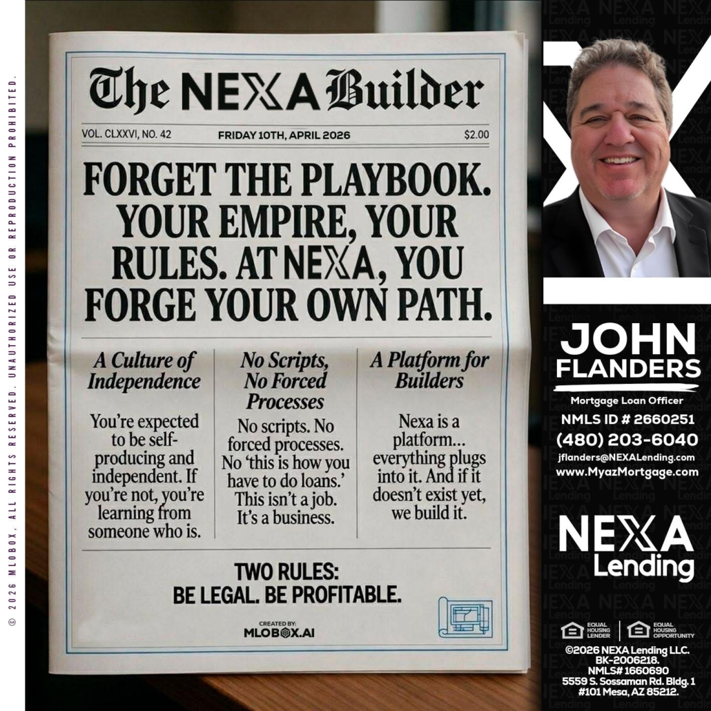 Hi, my name is John Flanders. I’m a Loan Officer with NEXA Lending LLC., offering personalized mortgage solutions, fast customized quotes, great rates and service with integrity.